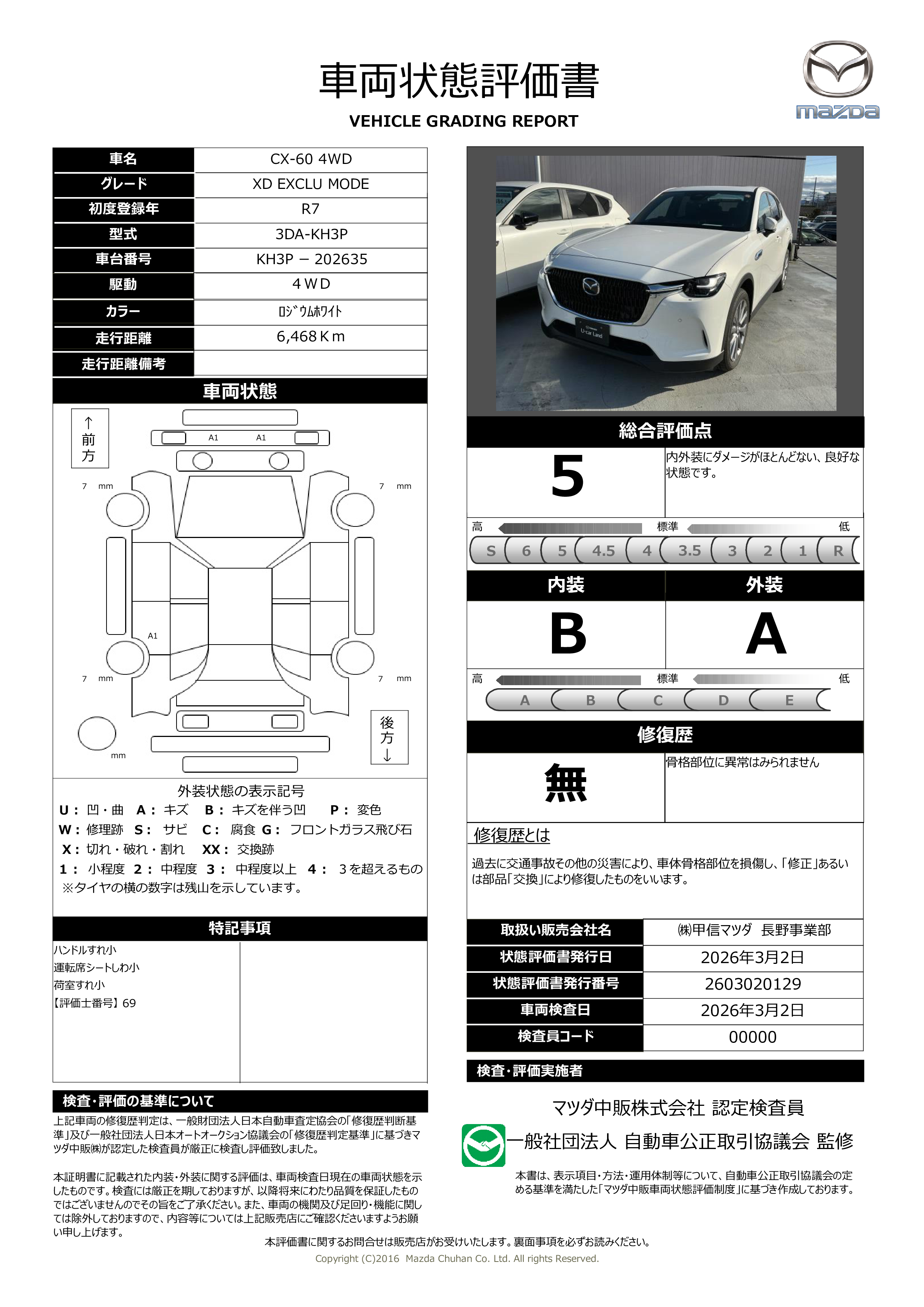 - 付 (新車保証継承(初度登録から5年間/走行距離10万kmまで))