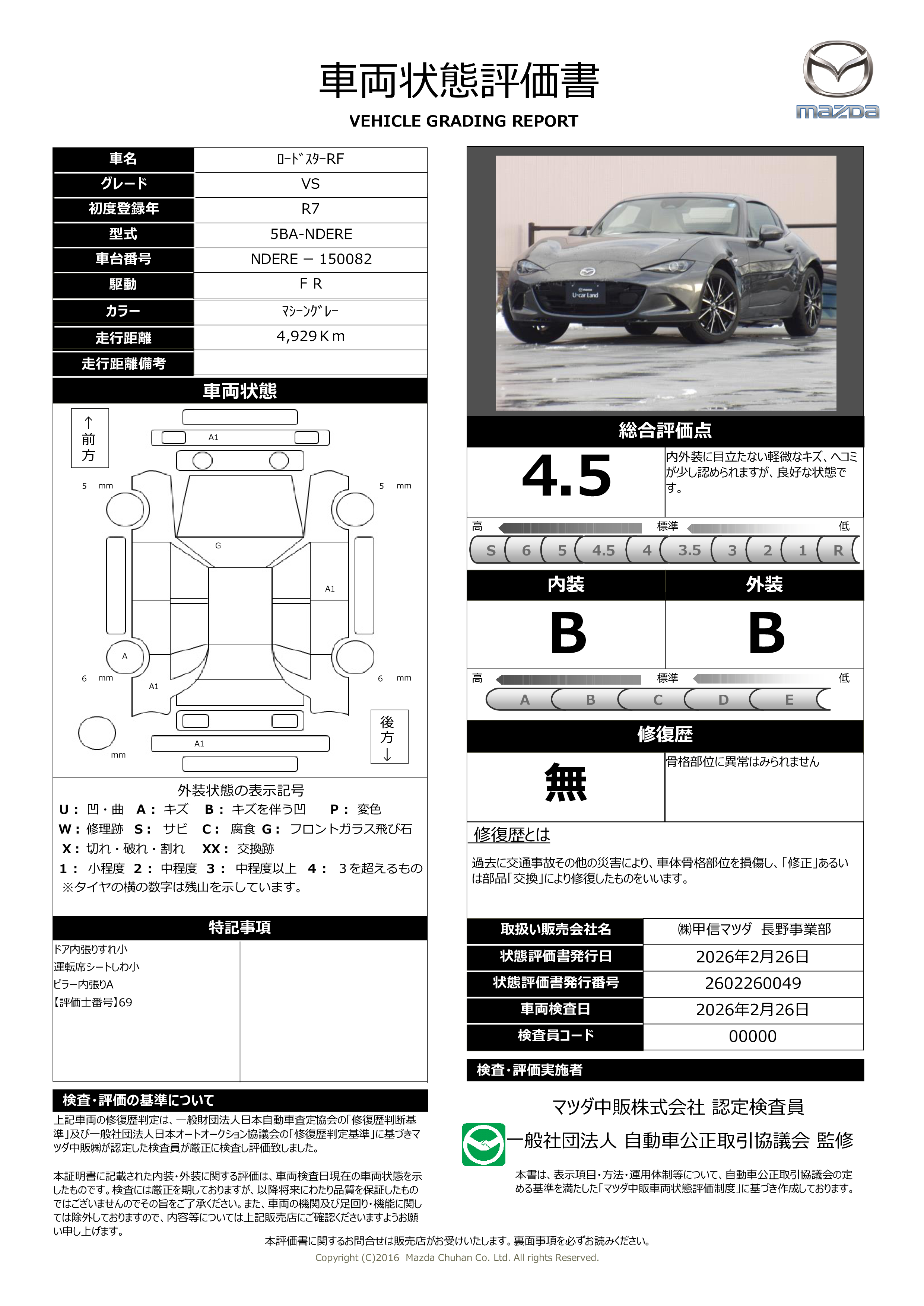 - 付 (新車保証継承(初度登録から5年間/走行距離10万kmまで))