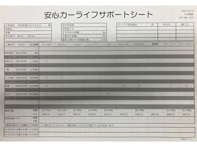 - 付 (1年走行距離無制限保証)