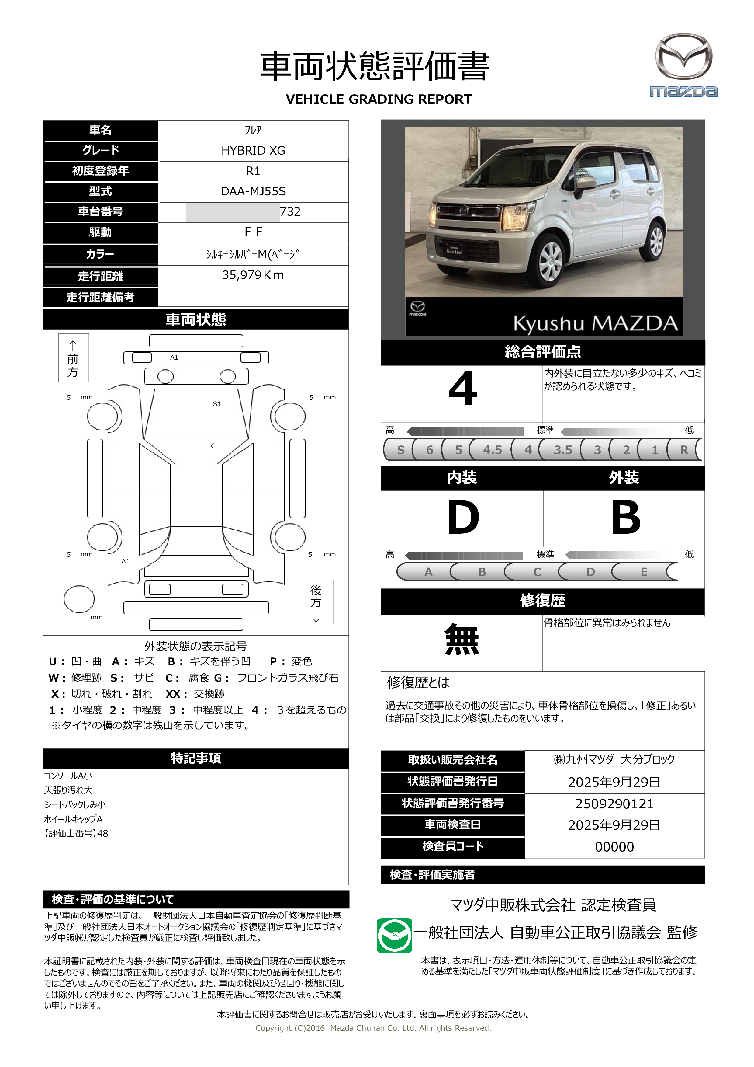 - 付 (新車保証継承(初度登録から5年間/走行距離10万kmまで))