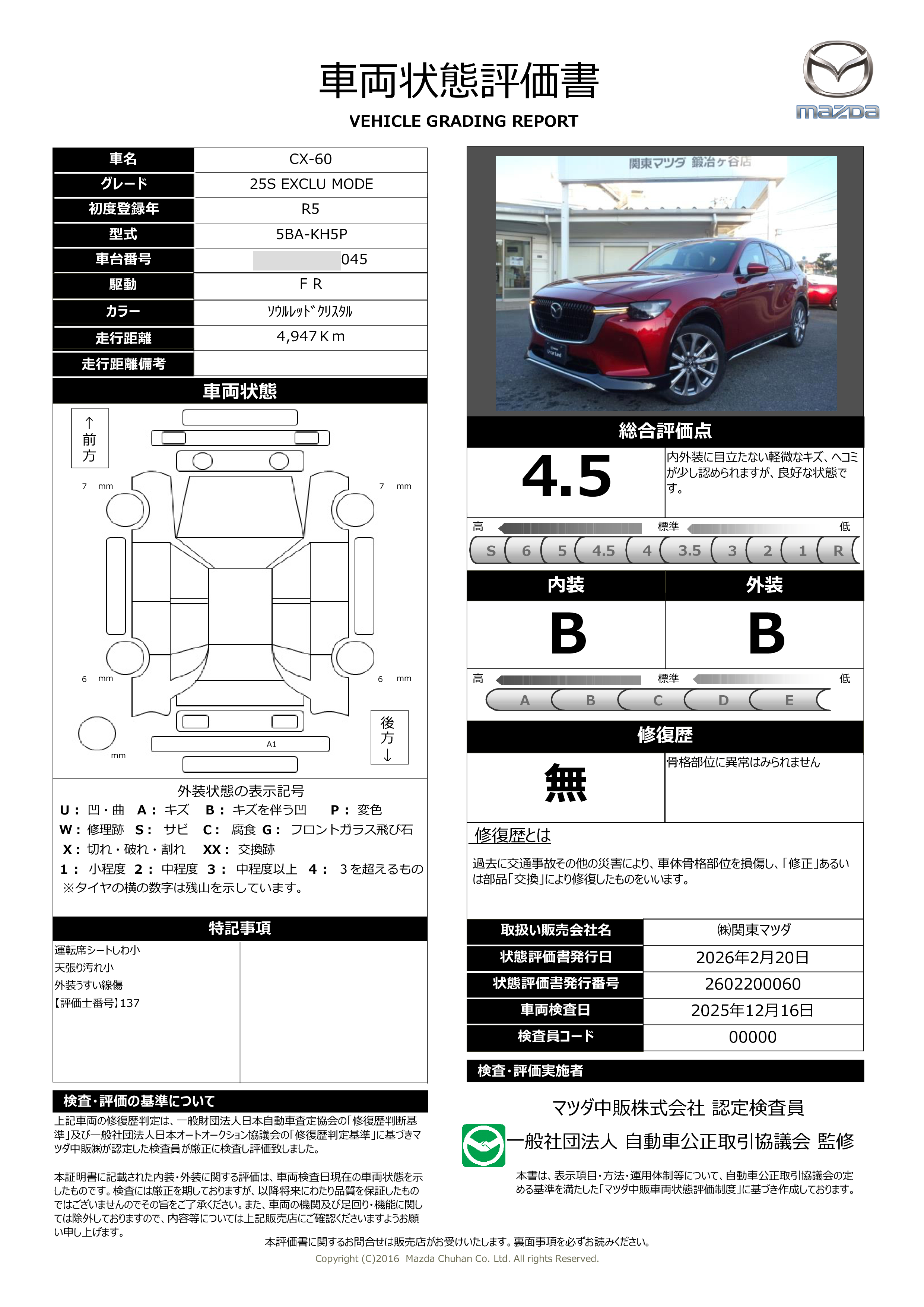 - 付 (新車保証継承(初度登録から5年間/走行距離10万kmまで))