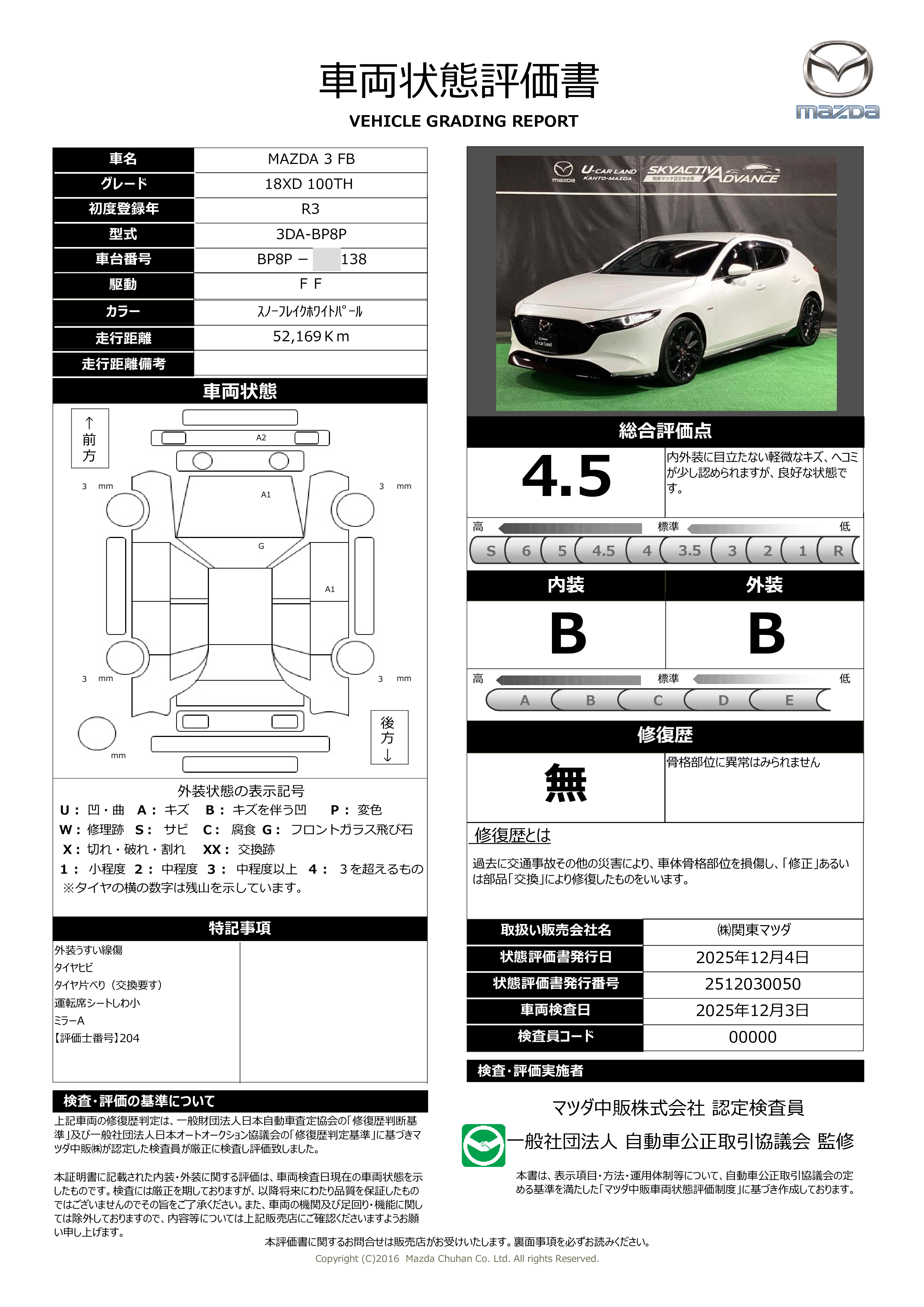 MAZDA3 FバックDT XD100周年 特別記念車