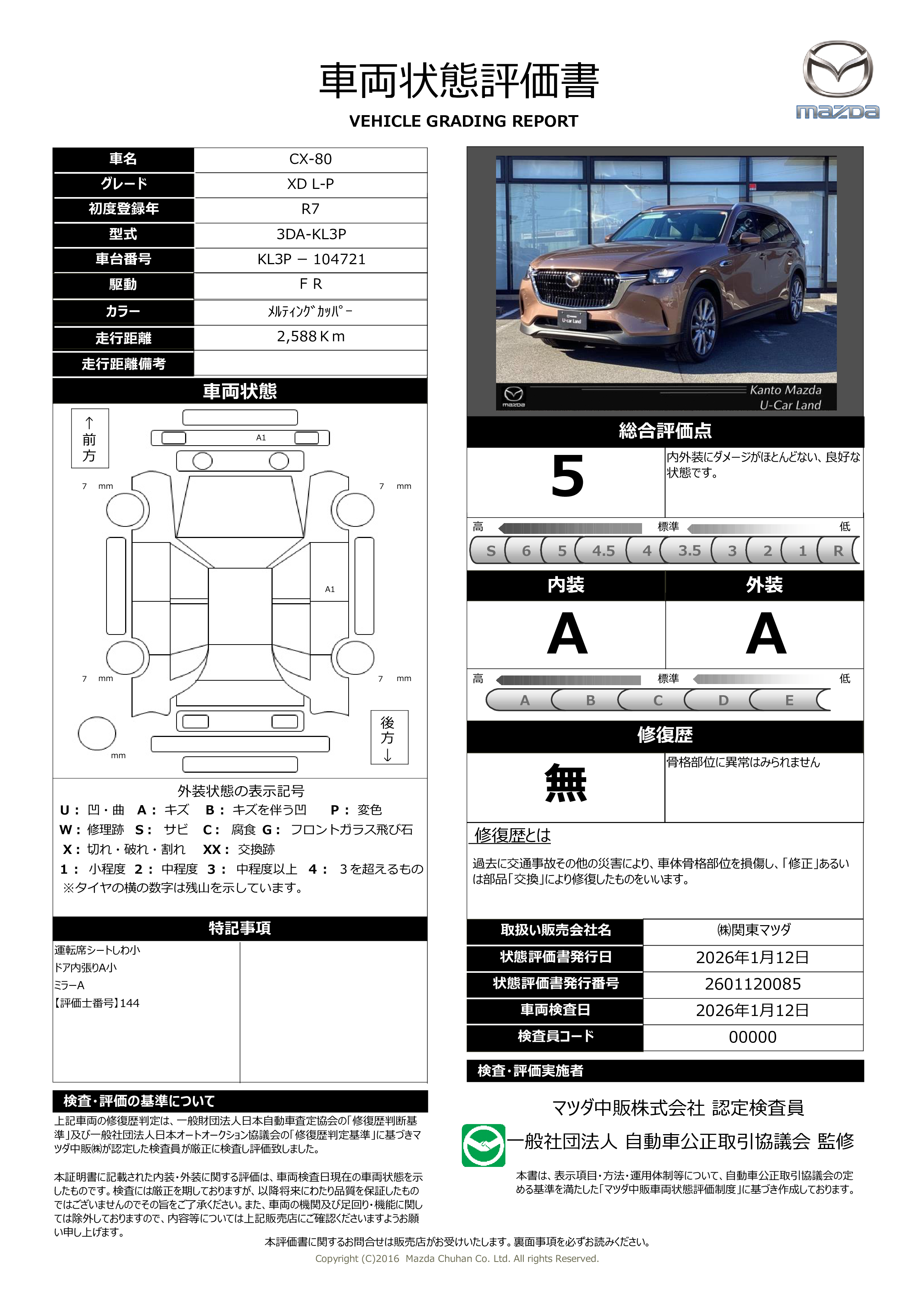 - 付 (新車保証継承(初度登録から5年間/走行距離10万kmまで))