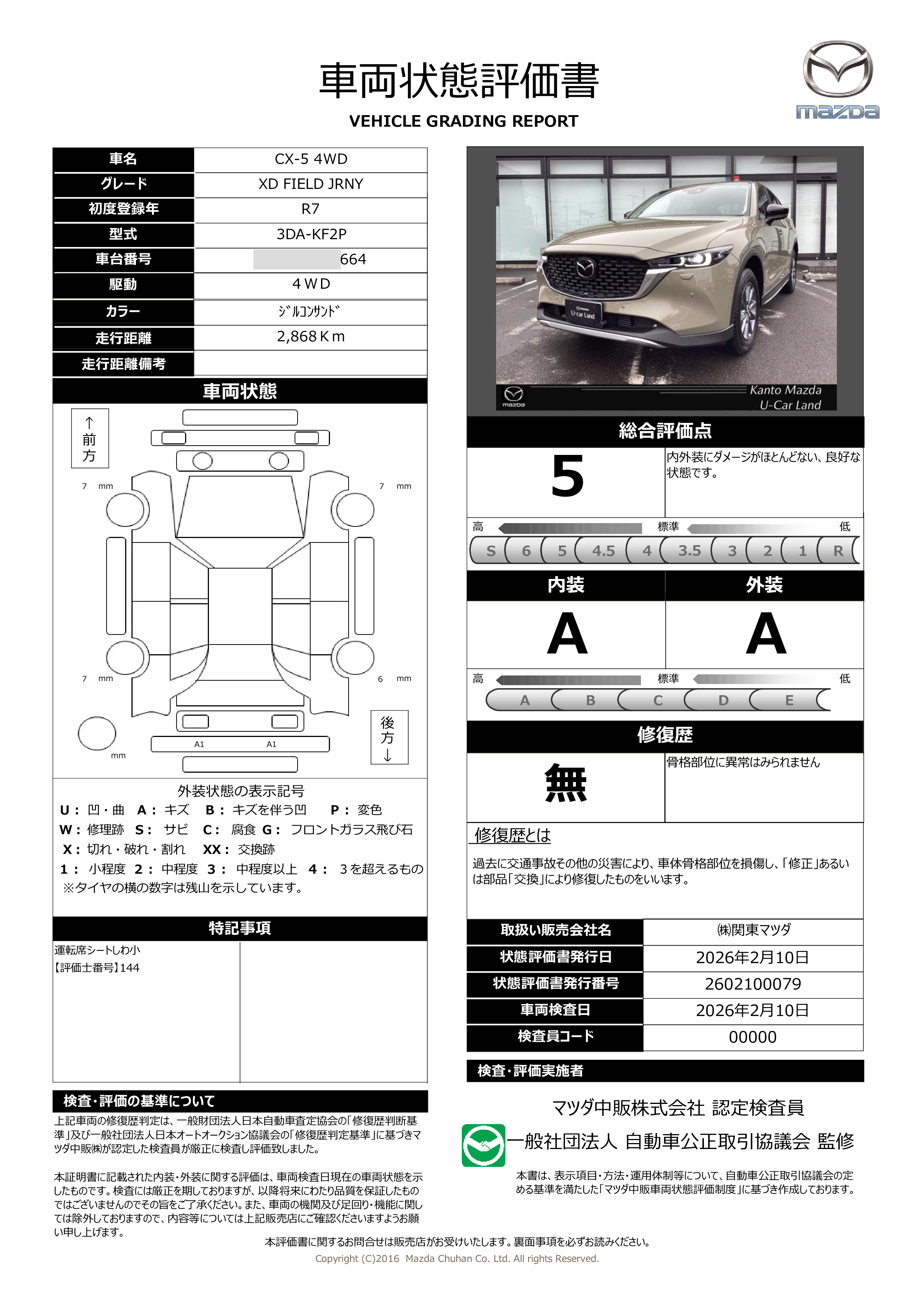 - 付 (新車保証継承(初度登録から5年間/走行距離10万kmまで))