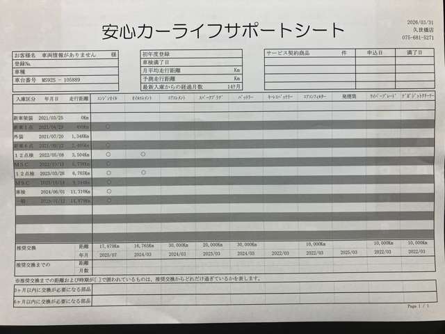 - 付 (1年走行距離無制限保証)