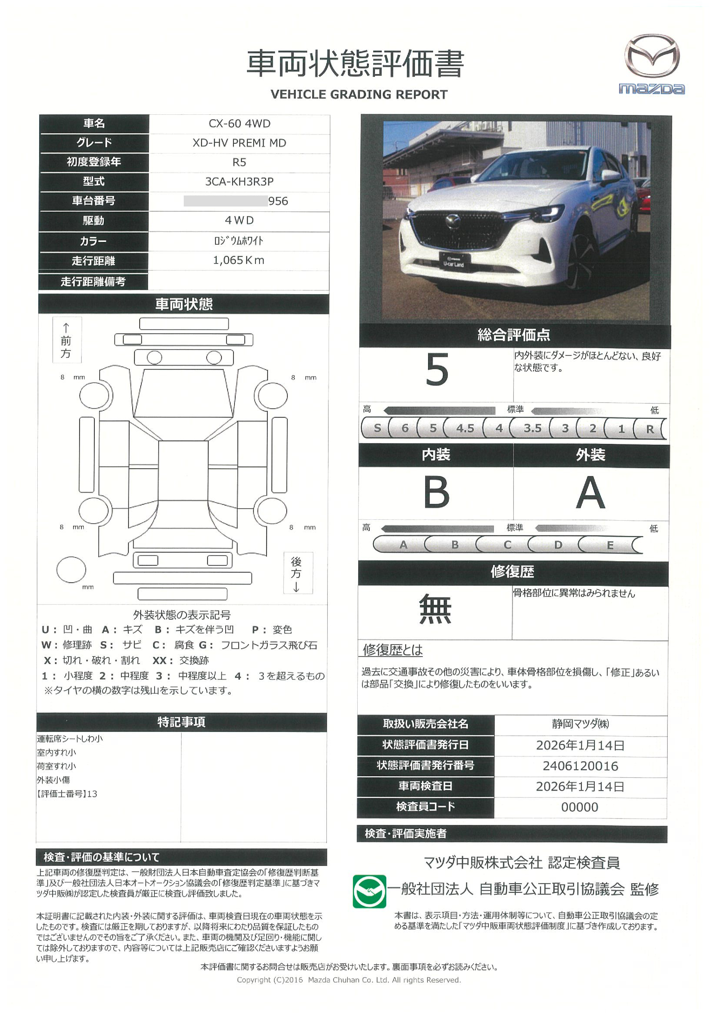 - 付 (1年走行距離無制限保証)