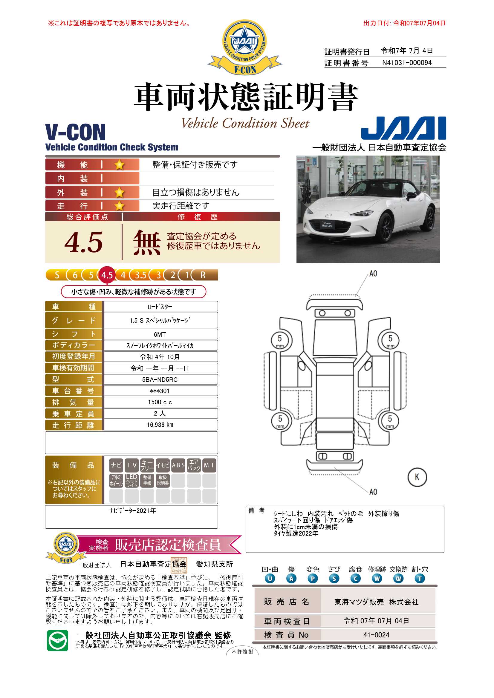 - 装備や写真の状態などが現車と異なる場合は、現車を優先いたします。