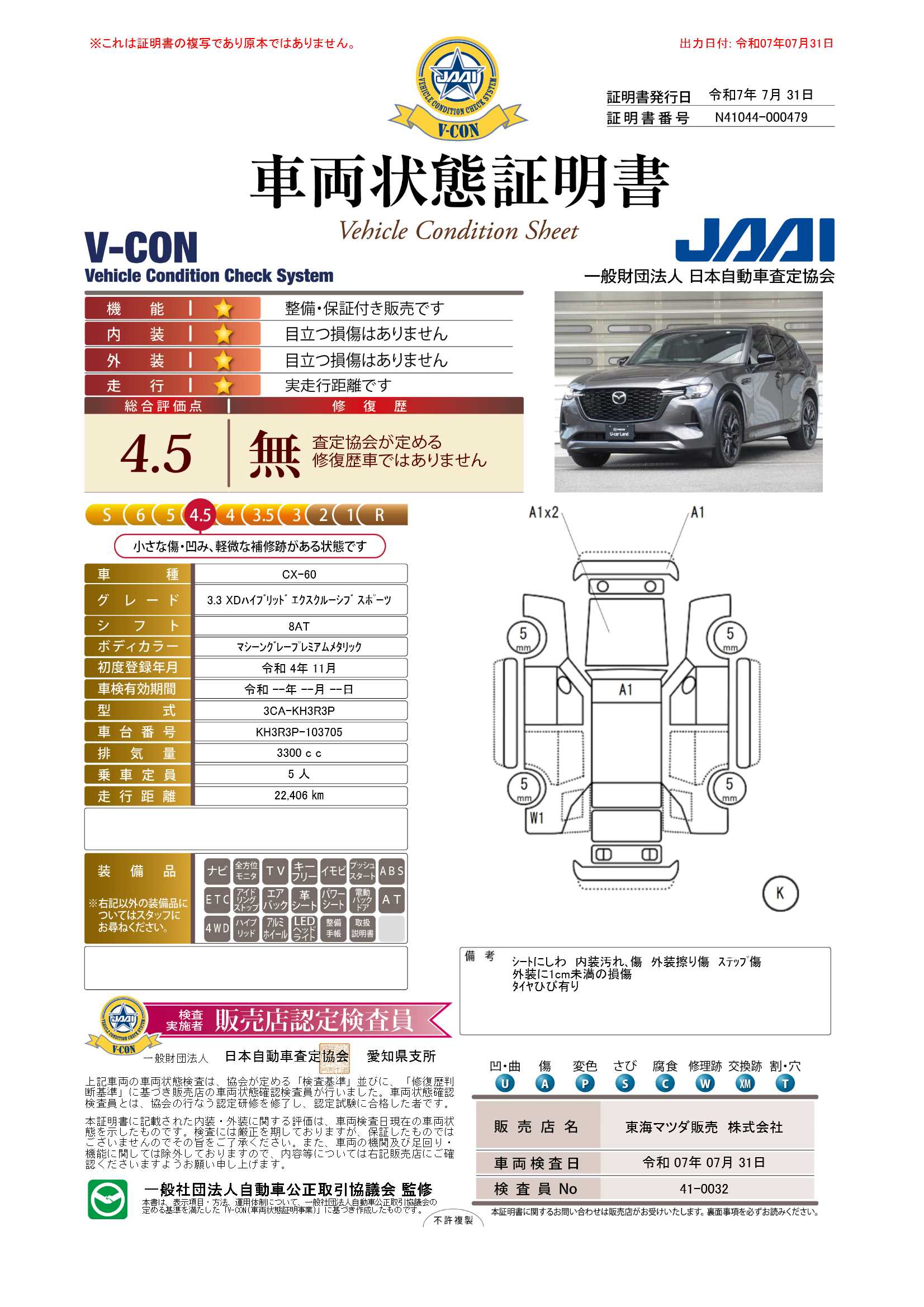 - 装備や写真の状態などが現車と異なる場合は、現車を優先いたします。