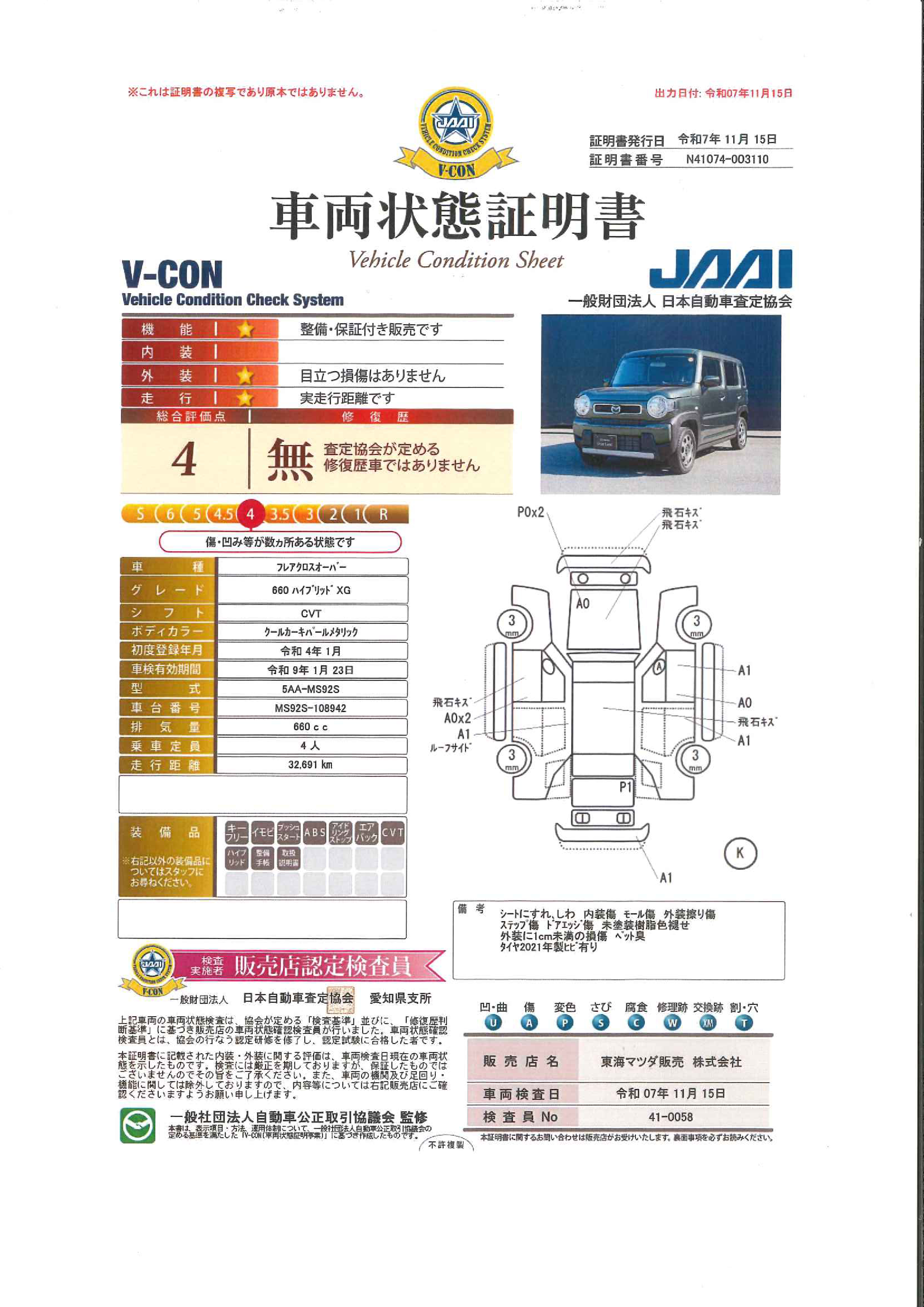 - 装備や写真の状態などが現車と異なる場合は、現車を優先いたします。