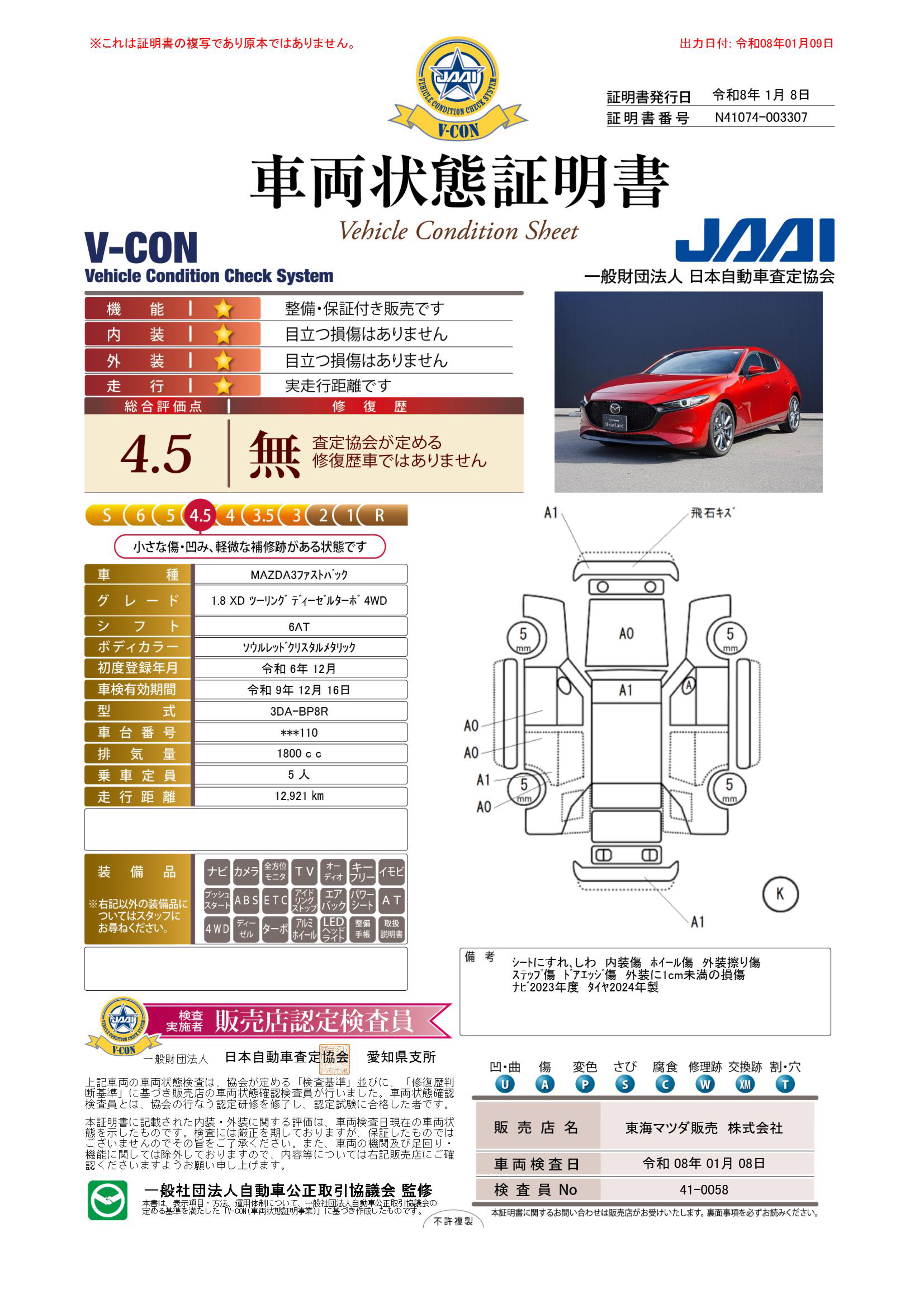- 付 (1年走行距離無制限保証)