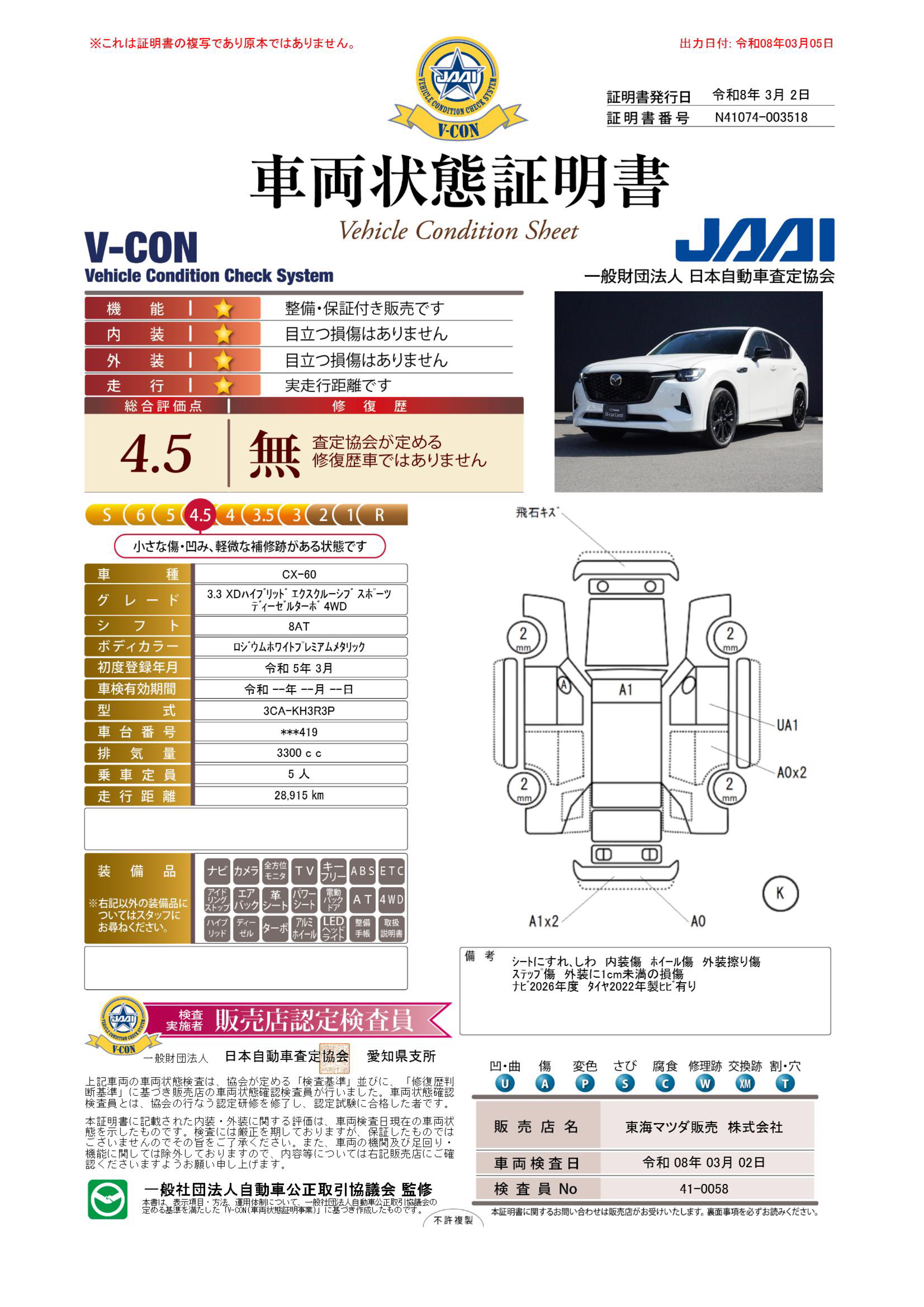 - 装備や写真の状態などが現車と異なる場合は、現車を優先いたします。
