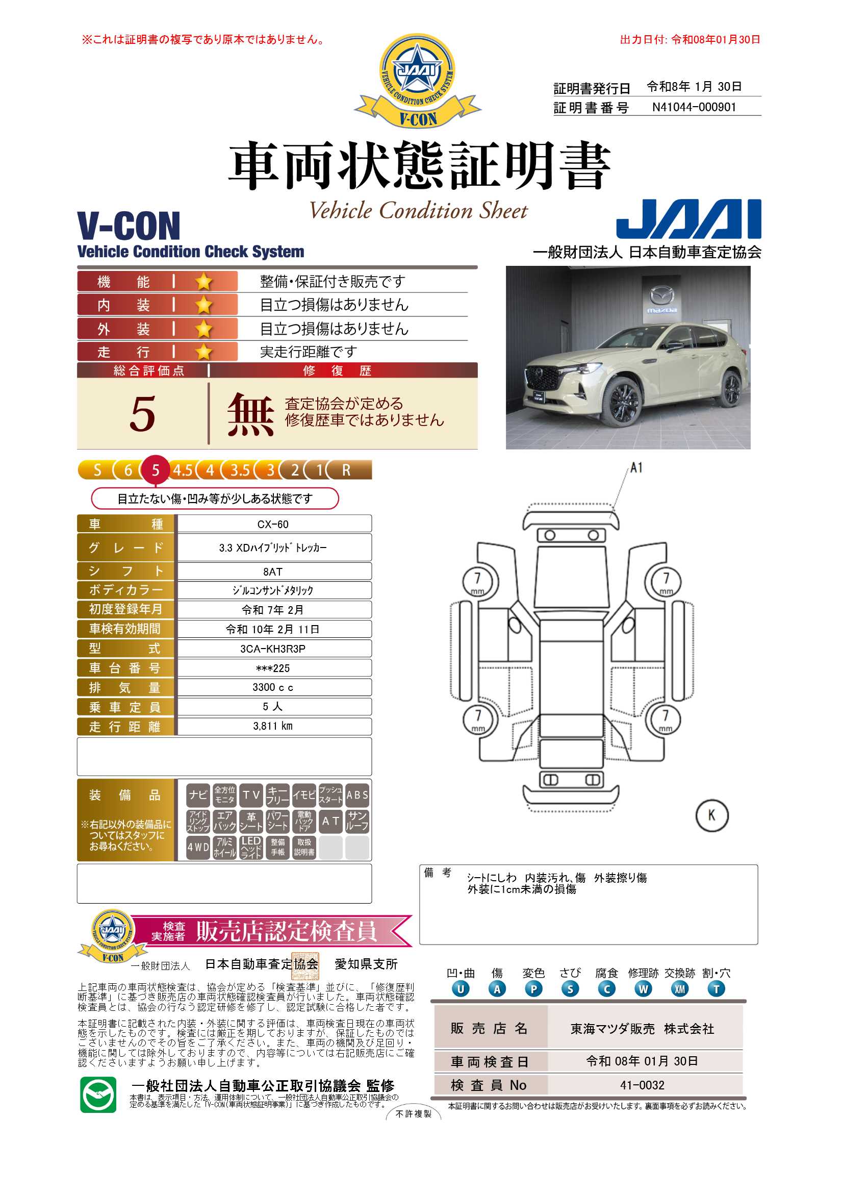 - 付 (1年走行距離無制限保証)