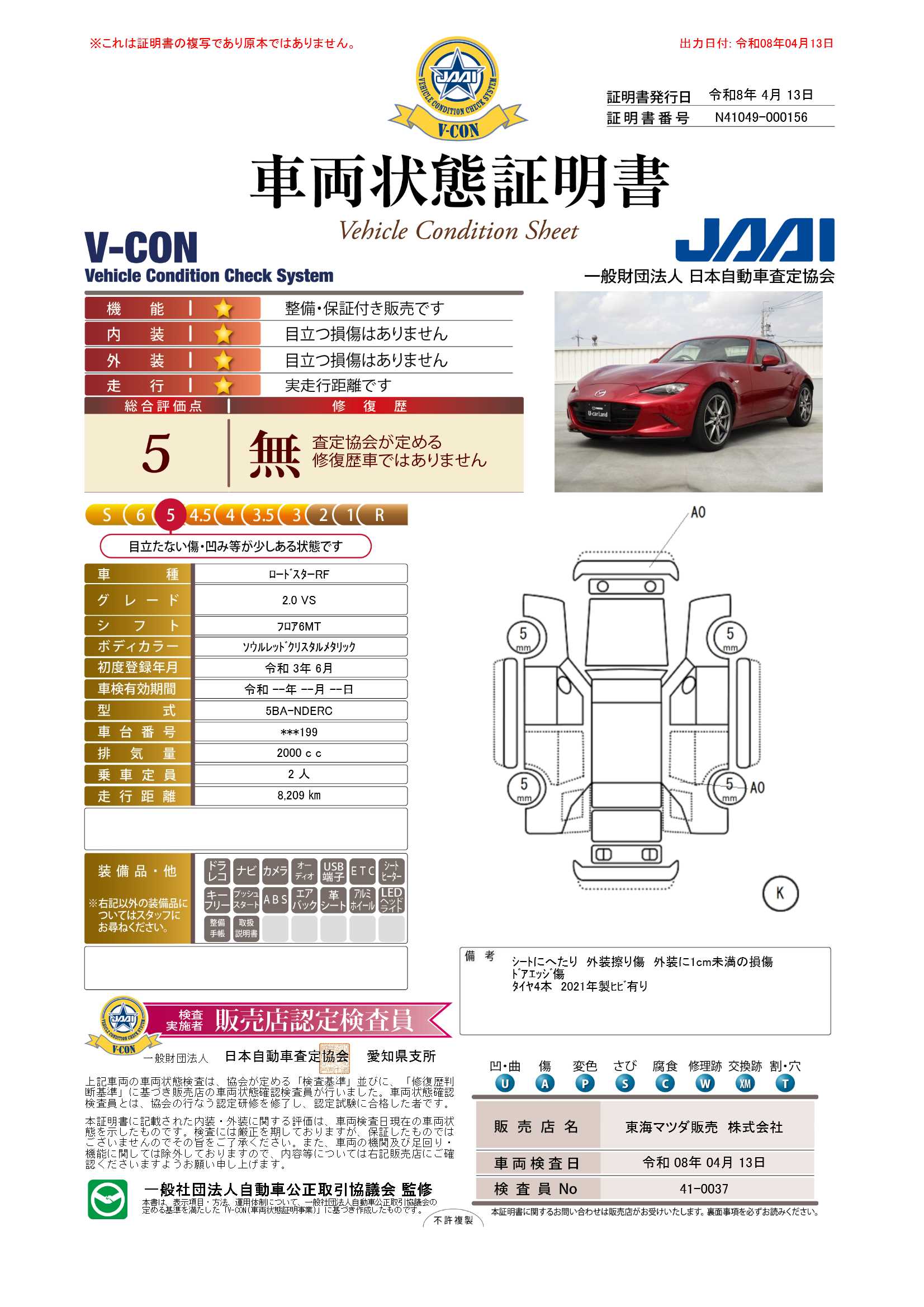 - 装備や写真の状態などが現車と異なる場合は、現車を優先いたします。