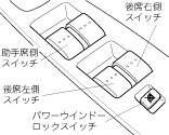 パワーウインドーロックスイッチをロックの位置にすると、運転席窓ガラス以外は開閉できません。