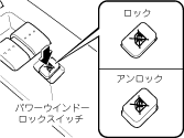 お子さまが同乗しているときは、パワーウインドーロックスイッチをロックの位置にしておいてください。