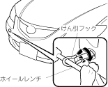 ホイールレンチを使ってけん引フックを確実に取り付けます。