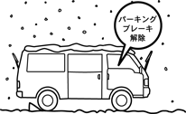 寒冷時はパーキングブレーキをかけると凍結して解除できなくなるおそれがあります。パーキングブレーキはかけず、マニュアル車はチェンジレバーを1またはRに、オートマチック車は