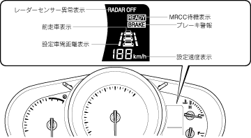 アクセルペダルの操作で希望の速度に調節します。速度が設定可能な状態に到達するとディスプレイのMRCC待機表示が表示されます。