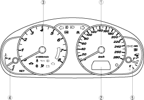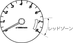 指針がレッドゾーン (許容回転数以上を示す) にはいらないように運転してください。エンジンの故障につながるおそれがあります。