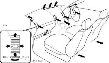 ノブを動かして、吹き出し風の向きを調節します。